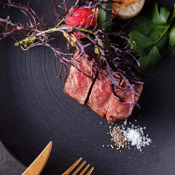 料理を目、お肉を焼く音と香り、温かさを感じ最後は至高の味を。